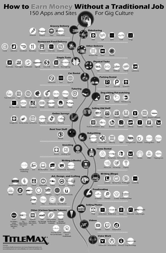 150 apps and sites people use to turn their time, skills, hobbies, or assets (cars, home, parking spaces, etc.) into additional income streams.