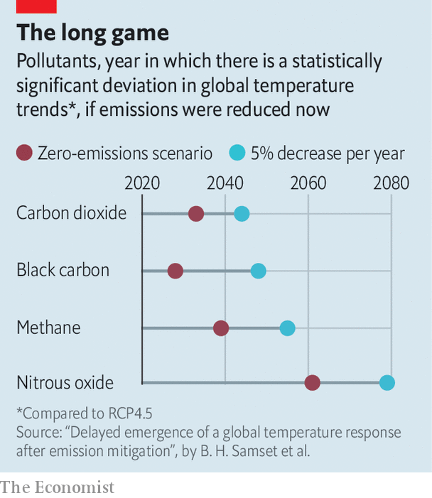 - The Economist Jul 11, 2020 Edition; “Emissions slashed today won’t slow warming until mid-century” Source: https://www.economist.com/science-and-technology/2020/07/11/emissions-slashed-today-wont-slow-warming-until-mid-century